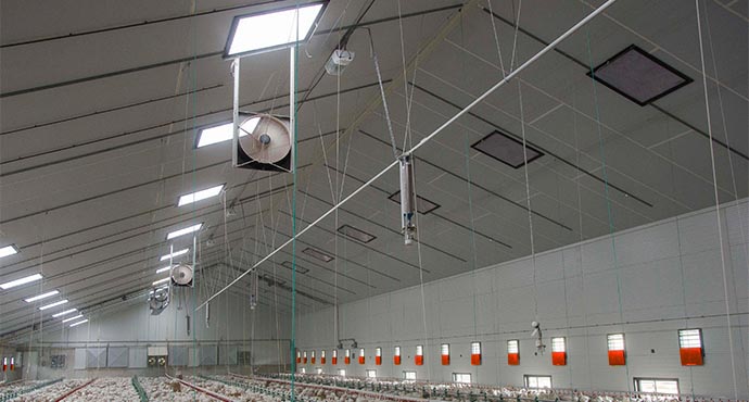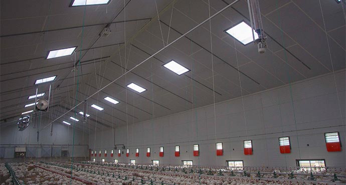 La solution de tabatières installées au plafond apporte une meilleure répartition au sol que les
